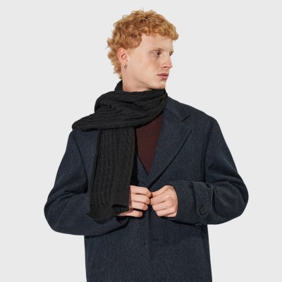 Класичний чорний шарф на осінь та зиму. Плетіння косичка не покидає вершини модних чартів, а у поєднання з хорошими тепловими характеристиками претендує стати вашим улюбленим аксесуаром. Оптимальний розмір, аби заховати шию від холоду. Виріб теплий та дуже м'який. Добре носиться, зносостійкий. Без ворсу, не линяє. Чудово товаришує з повсякденним та діловим одягом.