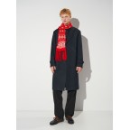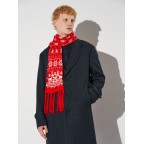 Яскравий теплий шарф з новорічно-різдвяним настроєм. Такі милі олені та сніжинки створюють упізнаваний скандинавський мотив, який залишається чи не найпопулярнішим поміж зимових сюжетів. Великий захват викликає м'якість та ласкавість на дотик полотна, у яке так приємно загорнутися. Довжина виробу дозволяє це зробити різними способами, кожного разу експериментуючи з вузлами та зав'язуваннями. Довгі китиці підкреслюють легкість негроміздкого, зате дуже теплого аксесуару, який пасуватиме дорослим та підліткам.