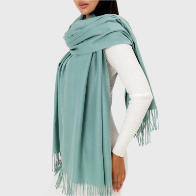 Світло-зелений шарф стане родзинкою у вашій шафі, а носити його ви зможете з середини осені, взимку та до середини весни. Вирішивши купити аксесуар такого кольору, ви повинні підібрати до нього сумочку або головний убір аналогічної тональності, якщо в нарядах відсутні речі зеленого кольору. Стильна бахрома увінчує кінчики аксесуара, вона є верхівкою моди, як і сам ментоловий колір виробу.