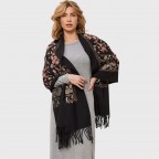 • Палантин шарф жіночий вовняний чорний вугільний з вишивкою 180х70 см