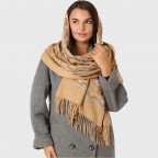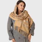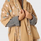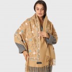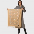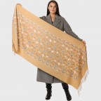 • Шарф жіночий вовняний бежевий капучино з квітковою вишивкою 180×70 см