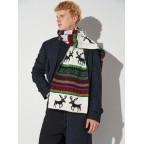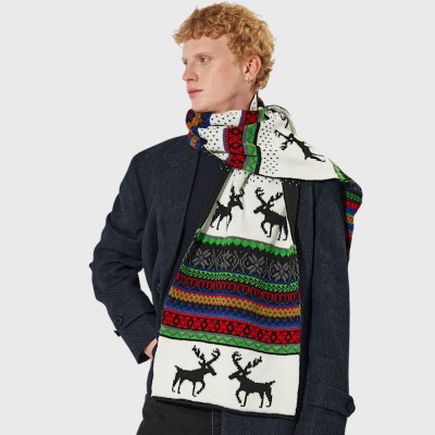 Цей шарф не просто зігріває в зимові морози, а й додає особливого настрою. Стильний малюнок оленів на чорно-білому фоні створює атмосферу свята та затишку, роблячи його чудовим подарунком для ваших близьких. Він також підійде для будь-якого стилю одягу – від класичного до кежуал.