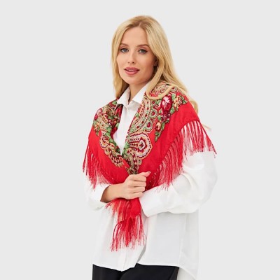 Пристрасно-червона та нескінченно-приваблива етнічна хустина з квітами. Така самобутня модель стане окрасою як етнічного, так і сучасного повсякденного образу. Виріб має чимало переваг, серед яких:
