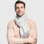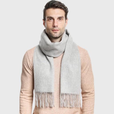 Теплый мужской шарф в классическом сером цвете. Нейтральность цвета и деловая стилистика позволяет носить аксессуар под классическое и кэжуал направление в одежде.