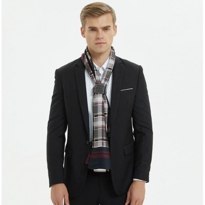 Легкий мужской шелковый шарф в сдержанной черно-серой гамме с элегантной клеткой. Аккуратный узор сочетается с привлекательными цветами, поэтому аксессуар гармонично смотрится с пальто, пиджаком или классическим костюмом. Двусторонний дизайн добавляет вариативности — одно изделие легко подстраивается под разное настроение и стиль. Размер 180×30 см обеспечивает комфортную носку и позволяет создать аккуратный узел или легкую драпировку.