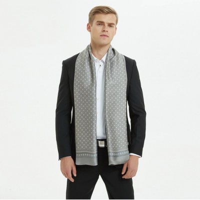 Легкий серый шелковый шарф создает сдержанный, аккуратный акцент в деловых и smart-casual образах. Тонкий узор выглядит аккуратно и придает шарфу изысканность. Двусторонняя структура позволяет легко менять настроение стилизации, а мягкий шелк красиво ложится и драпируется. Размер 180×30 см подходит для классических узлов под пальто или костюм.