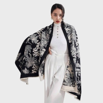 Большой и по-настоящему теплый двусторонний шарф-палантин с оригинальным с принтом в стиле ретро винтаж. Такая модель сейчас на пике популярности благодаря изысканному сочетанию сторон, где на одной преобладает черный тон, а с другой стороны - молочный. Полотно эффектно украшает цветочно-анималистический рисунок, любоваться которым - одно удовольствие. Но гораздо приятнее быть счастливой обладательницей этой роскоши.