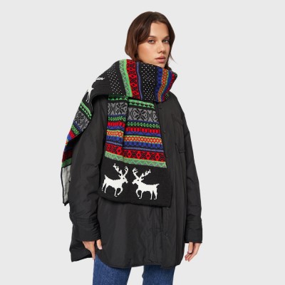 Вязаный теплый шарф с новогодними оленями. Трендовая вещь, которая подарит тепло и комфорт в самые холодные дни. Аксессуар, с которым вы всегда будете на стиле, а ваши социальные сети пополнятся новыми крутыми снимками. Скандинавский дизайн, нордическая сдержанность эффектно созданы переплетением ярких цветов. Ничего лишнего: олени на месте, узор – на месте, вы – в шарфе.
