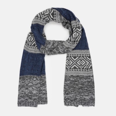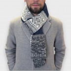 Стильный вязаный мужской шарф на осень, зиму и весну. Такая универсальность обусловлена качественным материалом, из которого создано это изделие. Полотно не парит и не колется, прекрасно сохраняет тепло и позволяет дышать коже. Несмотря на длину, шарф не громоздкий и тяжелый. Имеет интересное сочетание цветов – морского синего и серого. Вставки со скандинавским геометрическим обеспечивают модный характер изделия. Подходит как для подростков, так и для взрослых мужчин.