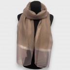 Элегантный и легкий большой шарф в нежном карамельном оттенке. Благодаря полупрозрачной текстуре и деликатному блеску он добавляет образу утонченности и легкости. Идеальный аксессуар для весенне-летнего сезона и праздничных выходов.