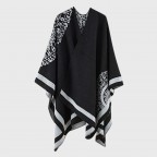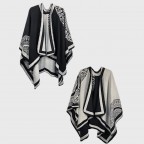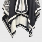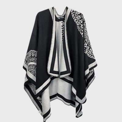 Универсальным и небанальным это пончо делают две вещи. Первое – это то, что такая накидка на плечи двусторонняя. Вы с легкостью можете изменять свой образ просто в зависимости от настроения, а также делать этот аксессуар идеально подходящим под тот или иной наряд. Второе – это утонченный, грациозный и одновременно нейтральный узор, который также лаконично дополнит любой образ и сделает его безупречным.