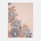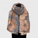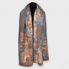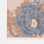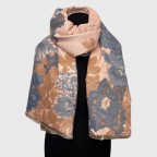 Жіночий вишуканий палантин створений для тих, хто цінує м’якість, тепло й тонке відчуття стилю. Квітковий малюнок виконаний у гармонійній, теплій гамі - поєднання сірих, пудрових, теракотових і блакитних відтінків створює відчуття спокою та елегантності. Світло-золоте обрамлення по краях додає витонченого сяйва, роблячи шарф завершеним акцентом будь-якого образу.