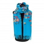 Ексклюзивний шарф ніжного блакитного відтінку з милим квітковим орнаментом додасть витонченості та вишуканості будь-якому діловому костюму, повсякденному одягу або урочистій вечірній сукні. Носити його можна, як палантин або шаль на голову.