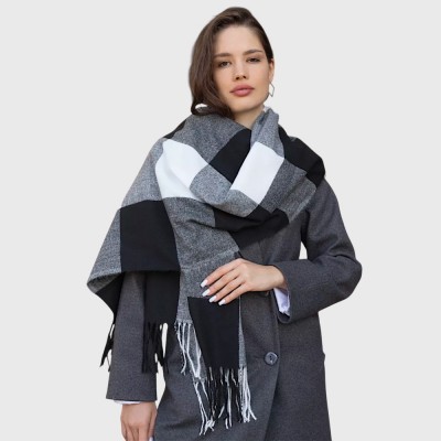 Чорно-біла клітинка – це безсмертний тренд, який органічно доповнює як класичний, так і повсякденний образ. Завдяки лаконічному чергуванню чорного, сірого та білого кольорів, шарф легко комбінується з будь-яким гардеробом, додаючи образу стриманої елегантності.
