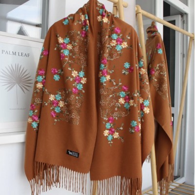 1300 грнЧарівна квіткова композиція у паризькому стилі на кашеміровому полотні карамельно-кавового кольору зваблює водномить. Тендітні пелюстки та завитки рослинних ліній ненав'язливо прикрашають теплий шарф, у якому так комфортно і в міжсезоння, і у холоднечу. Модель без ворсистості дарує приємні відчуття затишку та зручності. Трендовий колір - ідеальний для створення фешн-образів. Достатньо великий розмір для різних способів носіння, при цьому полотно не громіздке, не обтяжує плечей. Тонкі китиці з двох країв візуально подовжують аксесуар, роблять його граційним та кокетливим.