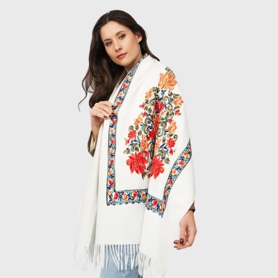 Подаруйте собі розкішний аксесуар - кашеміровий палантин з вишивкою. Магія цього виробу відчувається вже з першого погляду. Приваблива квіткова композиція органічно заповнює білий простір м'якого полотна. Виконана шовковими нитками, вишивка не має зачіпок та ниток як з лицьового боку, так і на звороті. Окрім цього: