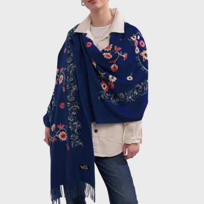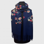 • Жіночий шарф-палантин синій кашемір вишитий, 195*70 см - 2