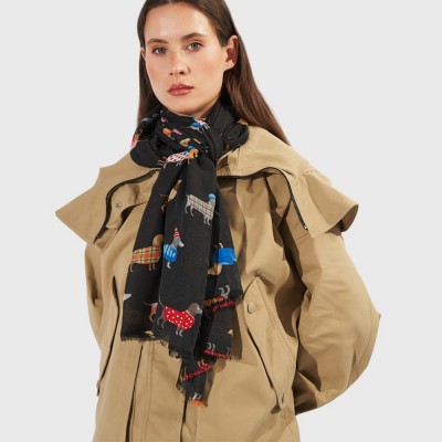 Оригінальний чорний шарф з милими малюнками песиків ідеально доповнить будь-який образ, додаючи нотку ніжності та кумедного шарму. Легкий, м'який і універсальний, він забезпечить комфорт та бездоганний вигляд, який приверне захоплені погляди. Дозвольте собі трохи грайливості, веселої чарівливості з аксесуаром, який має чимало переваг: