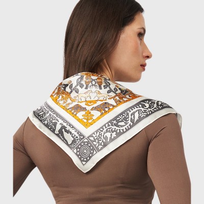 Неймовірно ніжна і дуже красива хустка з натурального 100% шовку. Модель відрізняється не тільки візуальною, але і тактильною ніжністю. В такому розкішному аксесуарі з принтом у стилі французького народного наїву можна відчути себе не тільки модницею, але й богинею, якій під силу будь-яка омана і чарівність. Хустка має чудовий вигляд на шиї, а також на блузах і сукнях. Експериментуйте!