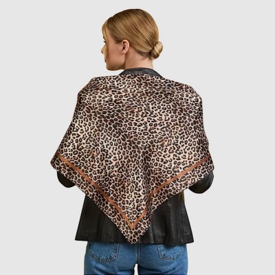 Така хустина не має застережень щодо гардероба чи періоду носіння. Звабливий хижий принт стане доречним будь-якого сезону як у поєднанні з пальтом чи жакетами, так і з літніми сукнями чи топами. Вам лише вирішити як зав'язати та драпірувати - полотна 90х90 см вистачить на різні комбінації та способи подачі! Сміливо експериментуйте та закохуйте нетривіальними образами з атласною леопардовою хустиною!