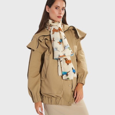 Якщо ви втомились від базових однотонних шарфів чи моделей з квітковими орнаментами і візерунками, пропонуємо саме цей аксесуар. Мультяшні собачки - смішні, серйозні, харизматичні - задають тон усьому вбранню, пожвавлюють класичний стиль, акцентують кежуал. Принт якісний, цікавий привабливими кольорами, пасуватиме жінкам абсолютно різного віку та кольоротипу. Таку модель можна поєднувати з пальтами, тренчами, жакетами або навіть легкими сукнями.