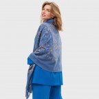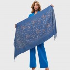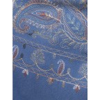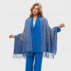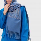 Стильний шарф-накидка зі щедрою вишивкою у етнічному стилі. Привабливе тло небанального небесно-джинсового кольору, на якому так красиво розквітла харизматична вишивка. Рослинні орнаменти переплітаються зі східним настроєм, а візерунки пейслі чергуються з ніжними квітами. Тканина приємна на дотик, тепла, м'яка. При достатньо великому розмірі, полотно не громіздке, не обтяжує плечей. Чудово носиться упродовж усього року. Як колір, так і вишивка доречно пасують до будь-якого гардеробу. Тонка бахрома (+10 см з кожного боку) додає візуальної цікавості образу