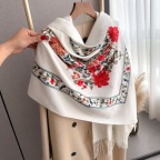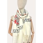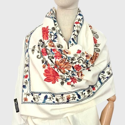 Подаруйте собі розкішний аксесуар - кашеміровий палантин з вишивкою. Магія цього виробу відчувається вже з першого погляду. Приваблива квіткова композиція органічно заповнює білий простір м'якого полотна. Виконана шовковими нитками, вишивка не має зачіпок та ниток як з лицьового боку, так і на звороті. Окрім цього: